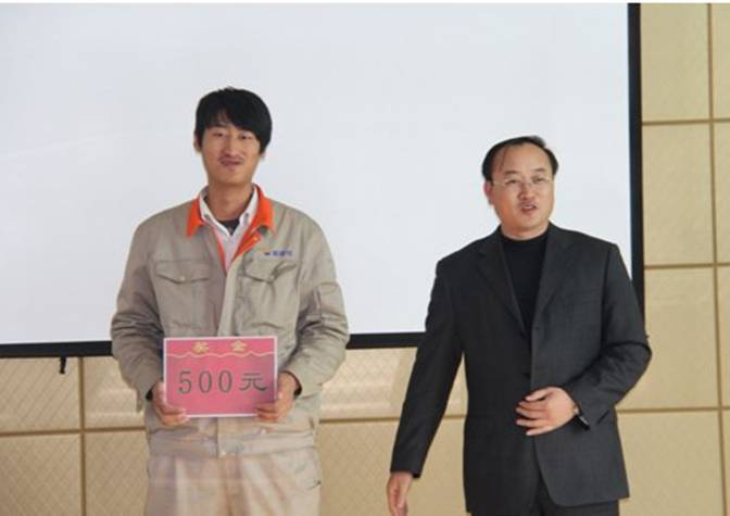 隨后公司領導分別為獲獎員工進行了頒獎。獲獎代表王星健談了對合理化建議的認識,并表示今后一定會將合理化建議更好地在基層推廣。公司副總經理劉海軍提出要求,他表示:合理化建議由生活化向技術化的徹底轉型還需要各部門共同的努力,合理化建議不是一場秀,而是要實實在在地在公司內部進行推廣,調動員工積極性,讓優秀的合理化建議更好的為公司發展服務。