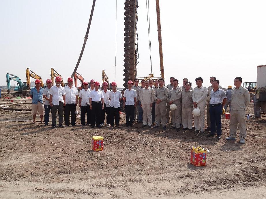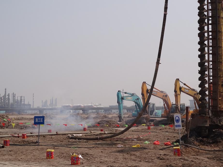 開工儀式在上午10:16分準時開始,雷鳴般的鞭炮聲過后,打樁機開始鉆探灌注第一根樁基。新欣園公司碳四精細化工的樁基施工,標志著我們新欣園的建設已經正式開始,新欣園公司建成后,必定會成為渤海灣又一耀眼的新星!