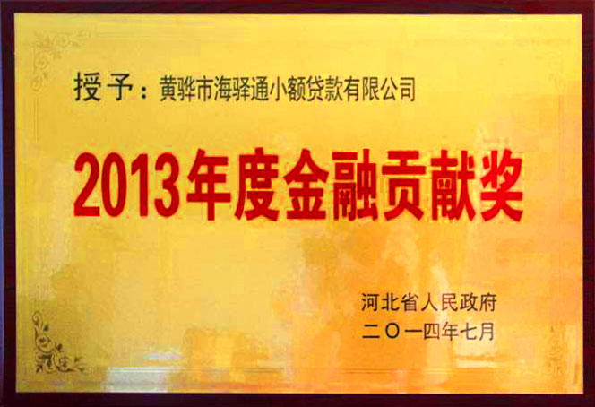 貸款公司自2009年成立至今,始終秉承“用心做事、追求卓越”的企業精神和“誠信經營、規避風險、實現合法利潤最大化”的經營理念,取得了良好的經濟效益和社會效益,連續三年被河北省及滄州市政府金融工作辦公室評為“優秀小額貸款公司”。今年7月,貸款公司再次榮獲殊榮,被河北省人民政府授予“2013年度金融貢獻獎”,這也是河北省人民政府及各級金融辦對我貸款公司在支持小微企業及農戶發展方面所做出的杰出貢獻的肯定及高度評價。