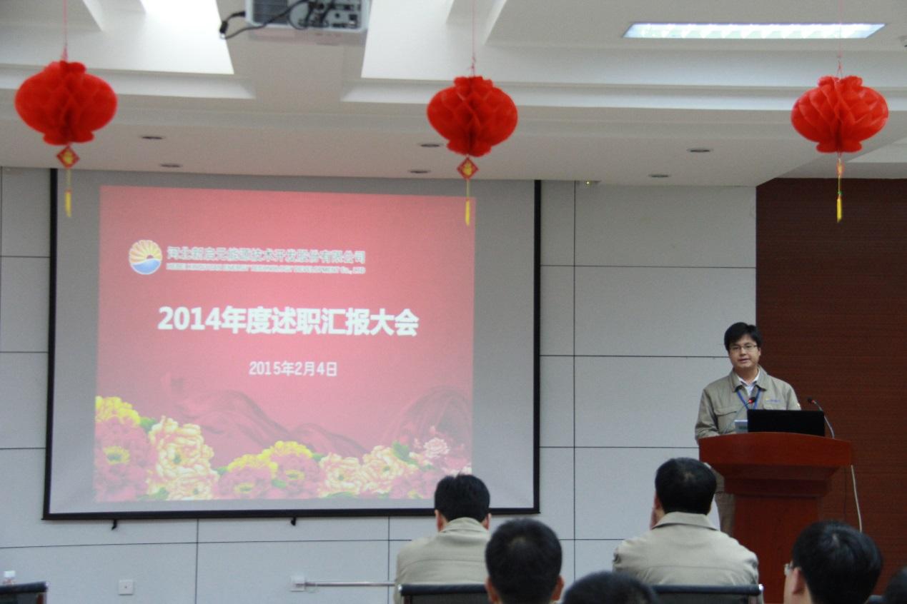 劉華冰首先宣讀了2014年度各部門績效考核成績。隨后,各部門經理分別進行述職匯報,認真總結了2014年取得的成績和存在的不足,明確了2015年工作計劃。
