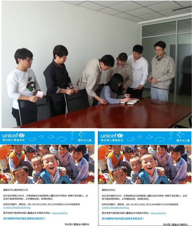 捷油公司全體員工和家屬從工資、平時(shí)的罰款中籌集資金3000元,匯給聯(lián)合國兒童基金會,奉獻(xiàn)自己的一份愛心。