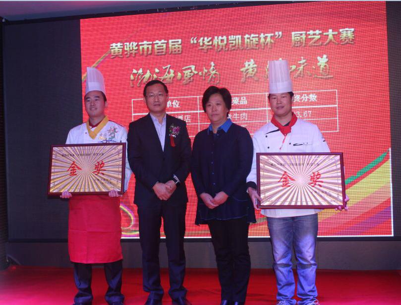 2015年10月31日上午,黃驊市首屆“華悅凱旋杯”廚藝大賽在華悅凱旋大酒店舉行。本次大賽由華悅凱旋大酒店和黃驊市食品藥品監(jiān)督局聯(lián)合主辦,旨在展示黃驊市博大精深的美食文化和文明向上的廚藝風貌。黃驊市委常委、副市長夏愛華,黃驊市政府食安辦主任耿兆良、河北中捷石化集團總經(jīng)理于國臣等作為嘉賓出席本次比賽,來自河北省、天津市的八位業(yè)內(nèi)資深人士擔任評委,另設(shè)21名大眾評審。