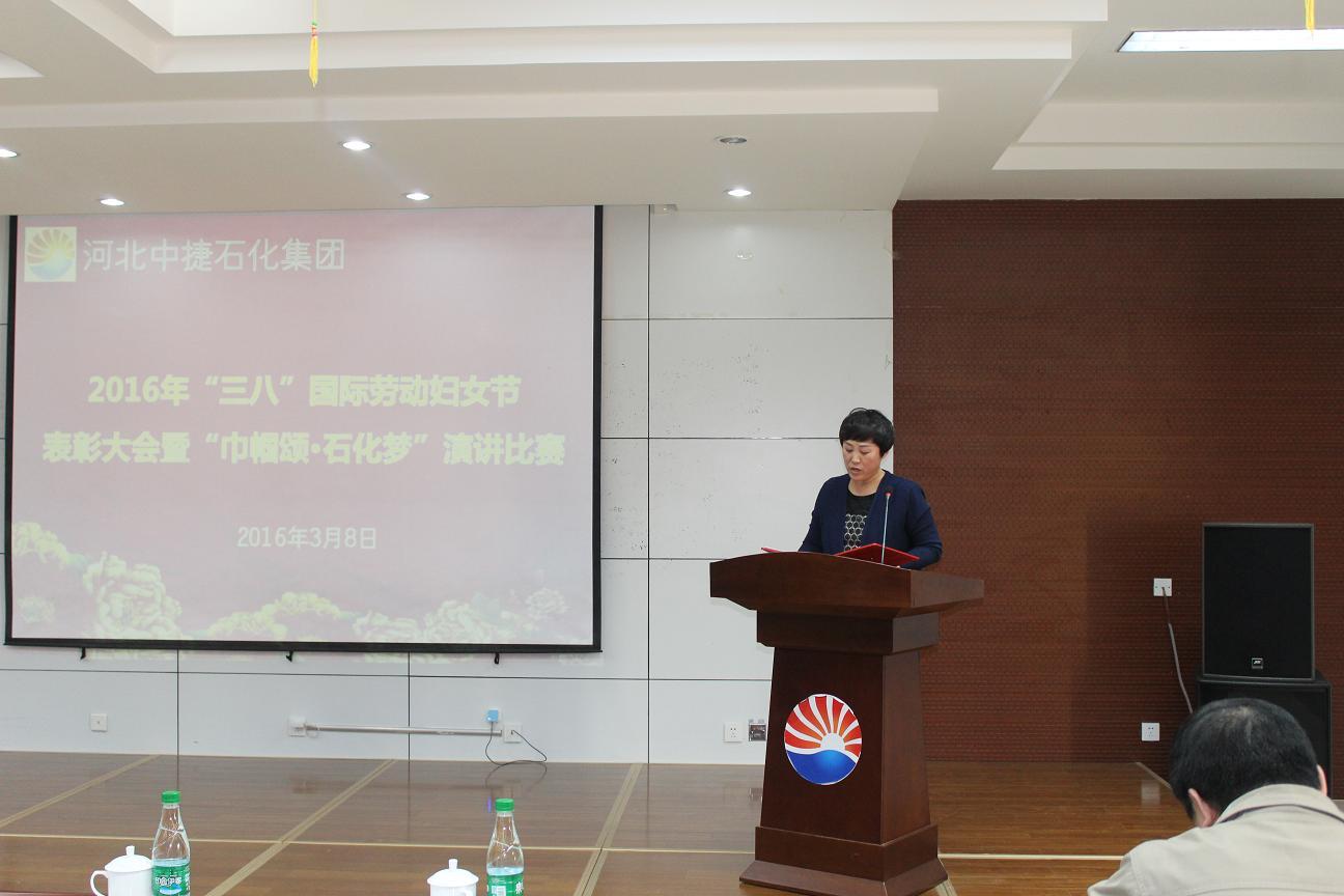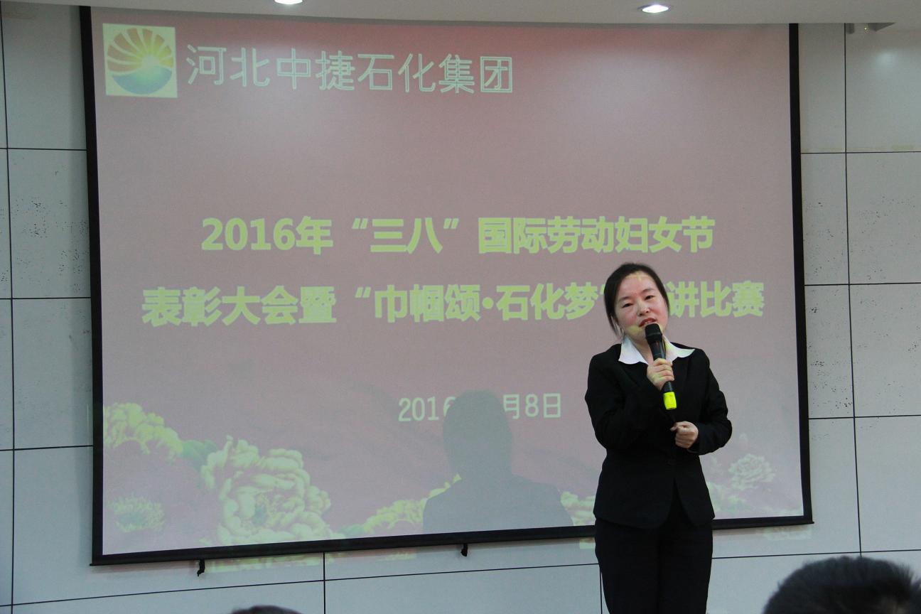 3月8日,是國際勞動(dòng)?jì)D女節(jié),為了讓公司的女工度過一個(gè)輕松快樂的“三?八”婦女節(jié),同時(shí)表彰先進(jìn)女工,河北中捷石化集團(tuán)2016年“三八”婦女節(jié)表彰大會(huì)暨“巾幗頌?石化夢”演講比賽于3月8日下午隆重舉行,集團(tuán)公司及各所屬單位領(lǐng)導(dǎo)、嘉賓評委、員工代表共計(jì)70余人參加了此次會(huì)議。