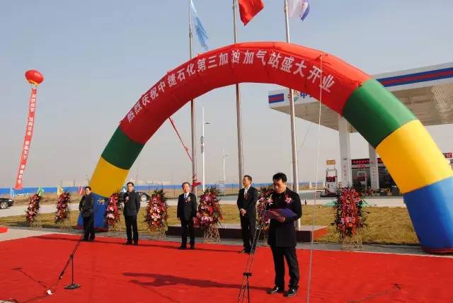暖陽高照、彩旗飄揚,典禮現場處處都洋溢著歡慶的景象。在西廣場旗臺下,華辰石油公司崔志河主持了開業典禮儀式,并對第三加油加氣站的情況及技術動態做了簡單介紹。之后,中捷石化集團總經理于國臣為典禮致辭。致辭中,于總代表集團公司對開業表示祝賀,對百忙之中專程參加開業慶典活動的伙伴表示熱烈的歡迎和衷心的感謝,對參與油氣站建設的施工單位及建設者們表示最崇高的敬意。隨后又對加油加氣站未來發展提出了遠大的規劃要求與設想,為華辰石油發展提供了有益的參考。同時于總表示,在社會各界朋友的幫助下,在大家積極關注、大力支持和滿懷希望的期待下,包括第三加油加氣站在內的華辰加油加氣站,必將會為全區人民打造一個誠實守信、質優價廉、高標服務、品牌一流的服務型企業,以及中捷農場對外形象的一個文明窗口。