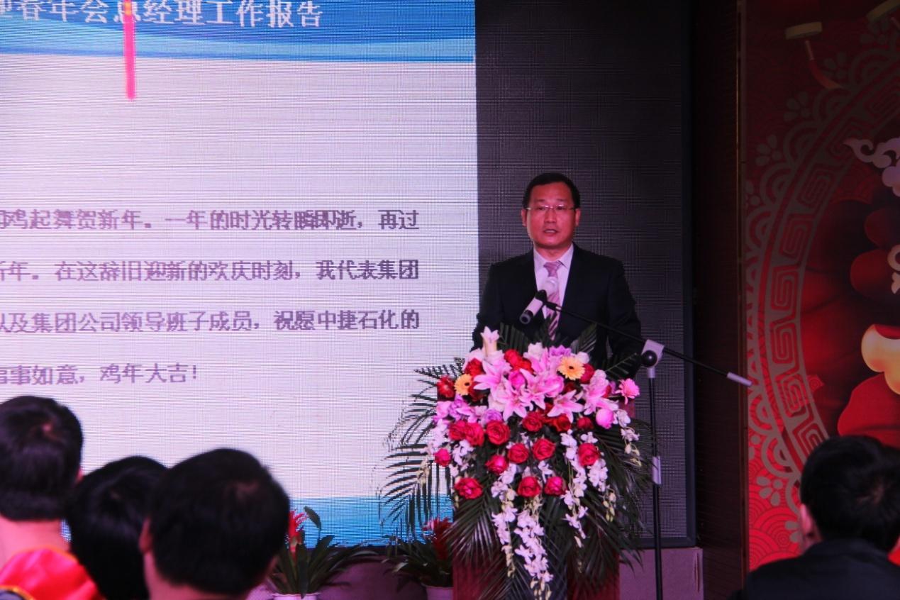 王總在會議最后說:我真心的祝愿所有的伙伴和家人都能夠事事順利,歲歲平安,也真心的希望我們彼此之間能夠在今后的工作中坦誠相待,互通心聲。因為只有強大的凝聚力才能成就強大的事業,我們一定要擁有達成百年企業的同一個夢想,共塑“艱苦奮斗成大業”的堅定信仰。我以一位中捷石化老人的身份,愿與你們一道在各自的工作崗位上恪盡職守,風雨與共,愿與你一起責無旁貸的去接受新年的新挑戰,實現新年的新突破,開創我們共同家園的新局面!