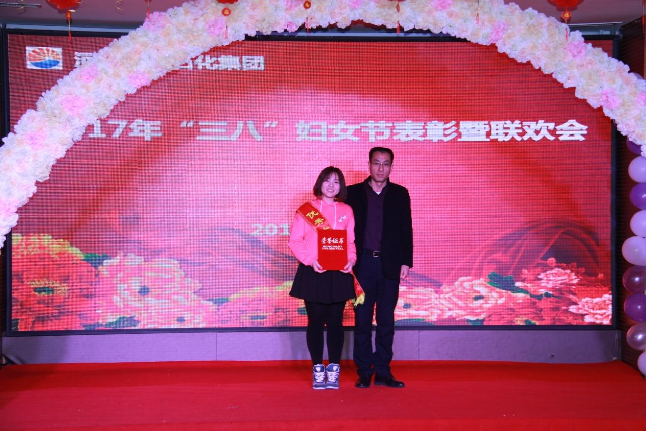 集團工會主席趙愛華宣讀了河北中捷石化集團2017年“三八”婦女節“先進女職工”、“ 道德模范標兵”、“ 優秀女工組長”表彰決定,集團公司黨委書記、副總經理劉國新,工會主席趙愛華,紀委書記朱振江和新啟元公司工會主席劉立新為獲得表彰的17名先進女工進行了頒獎。新啟元公司朱雪梅作為先進代表進行了獲獎發言。