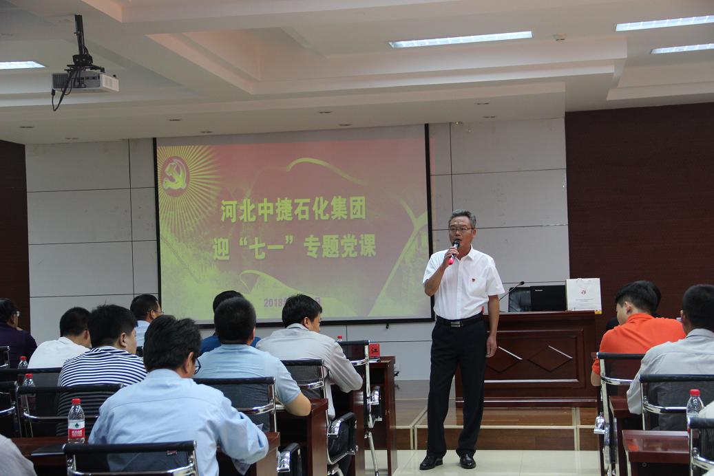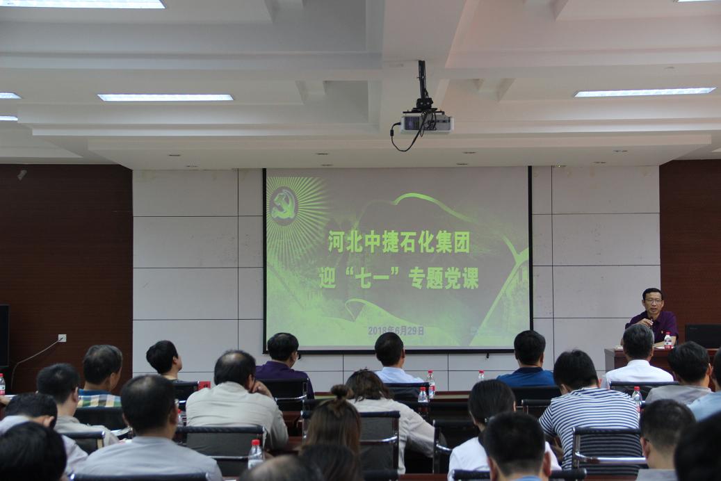 6月29日下午,河北中捷石化集團黨委在科研樓六樓會議室舉辦迎“七一”專題黨課學習活動,集團總經理于國臣,黨委副書記朱振江,集團各黨支部書記、黨員及積極分子代表共計80余人參加。此次黨課學習特邀中捷產業園區宣傳部副部長劉金林主講。