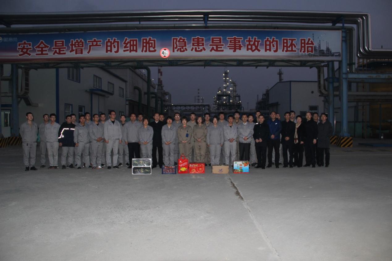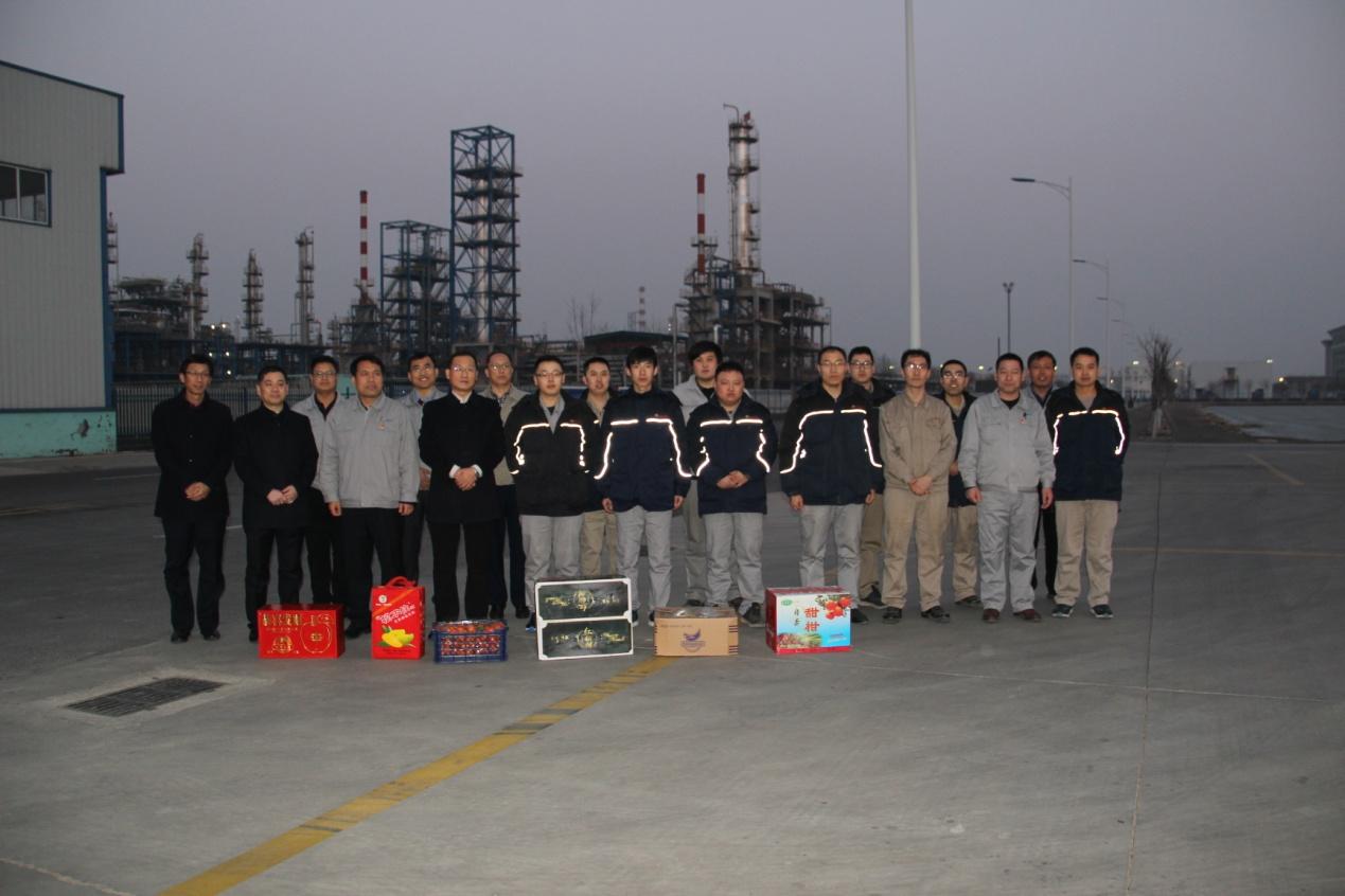 2019年2月4日,正值農歷臘月三十,河北中捷石化集團有限公司領導班子在集團黨委書記于國臣、總經理喬樹華的帶領下,先后赴黃驊華悅凱旋大酒店、滄州臨港華辰石油產品有限公司第三加油加氣站、河北捷馨建材責任有限公司地熱站、河北華鑫洺源石油儲運有限公司、河北華騰化工設備安裝工程有限公司、河北新欣園能源股份有限公司及河北新啟元能源技術開發股份有限公司,走訪慰問了除夕夜仍堅守在工作崗位無私奉獻的石化伙伴們,為大家送去慰問品,并致以誠摯的問候和美好的祝福,感謝他們在新春佳節的付出和努力,同時祝愿全體員工及其家人身體健康,萬事如意,春節快樂,闔家幸福。