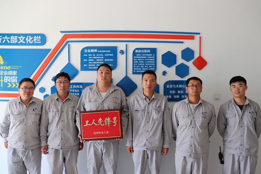 8月23日,集團工會一行、新啟元工會主席劉立新來到新啟元多相傳質創新工作室,為劉賢成團隊頒發了由滄州市總工會授予的“工人先鋒號”榮譽。部門經理劉賢成、管理骨干、員工代表參加了授予儀式。