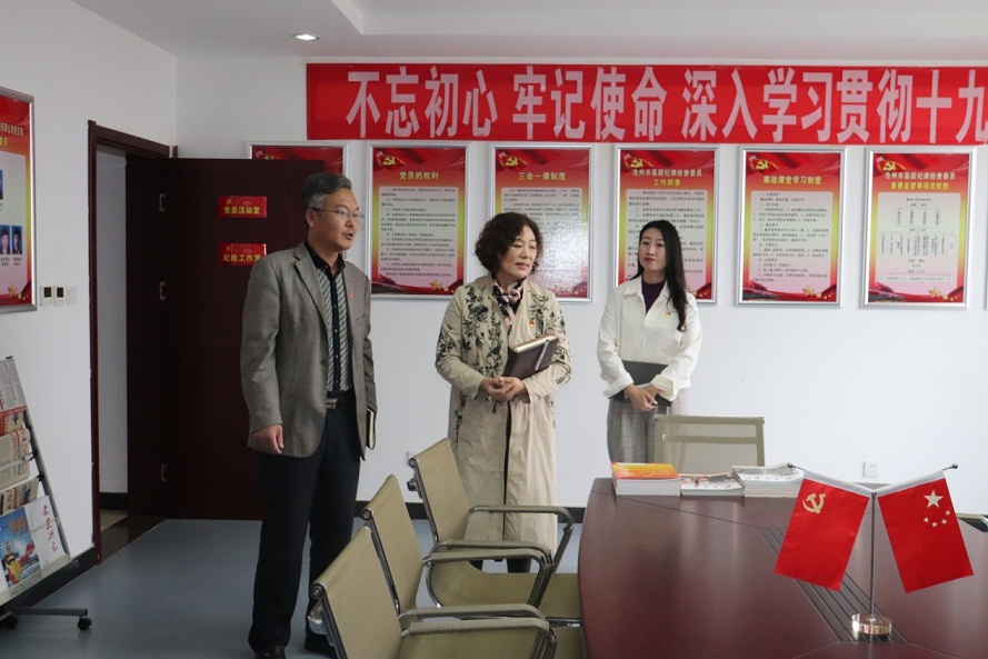 王玉芬書記一行首先視察了黨建活動(dòng)陣地,查看了集團(tuán)黨委黨建文化墻、黨員活動(dòng)室、圖書室等黨建板塊,對(duì)集團(tuán)黨委黨建硬件設(shè)施給予了高度評(píng)價(jià),同時(shí)對(duì)黨建陣地的優(yōu)化升級(jí)提出了指導(dǎo)性意見。