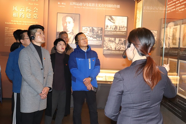 隨后在中共一大會址展覽廳,先后參觀了“前赴后繼、救亡圖存”、“風云際會、相約建黨”、“群英匯聚、開天辟地”等專題展區。各展區內陳列著中國共產黨的歷史文物、資料和革命志士的遺物、手跡,集中反映了中國共產黨早期開展革命活動、籌建中國共產黨的歷史脈絡。大家放慢腳步,駐足于歷史記錄痕跡前,表情肅穆且凝重,懷揣著敬仰之心,感受著共產黨人在革命發展中的擔當和初心,感悟著共產黨人在中國歷史上鐫刻的榮光和使命。