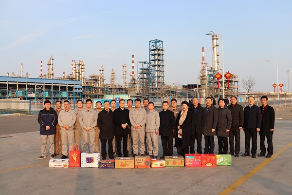 2020年1月24日,正值大年三十,河北中捷石化集團有限公司領導班子在集團黨委書記于國臣、總經理喬樹華的帶領下,先后赴河北華鑫洺源石油儲運有限公司、河北新欣園能源股份有限公司、河北新啟元能源技術開發股份有限公司、河北華騰化工設備安裝工程有限公司、滄州臨港華辰石油產品有限公司第一加油站、河北捷馨建材責任有限公司地熱站、黃驊華悅凱旋大酒店,親切慰問了節日期間仍堅守崗位的伙伴們,為大家送去慰問品,表達了新春的祝福和節日的關懷。同時對伙伴們的辛勤付出與奉獻及廣大員工家屬的理解與支持表示誠摯的敬意和由衷的感謝,并叮囑各單位主要領導合理部署安排節日期間的工作,讓伙伴們度過祥和、歡樂的節日。