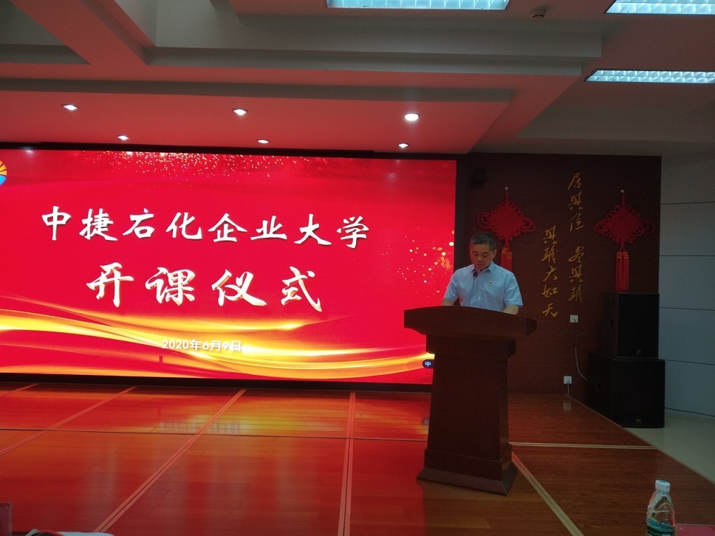 集團總經理喬樹華為中捷石化企業大學開課儀式作重要講話。喬總首先代表集團公司全體人員向合作伙伴——格局商學院及諸位老師表示真摯的感謝,并預祝雙方的合作更加愉快,祝愿彼此在攜手共進的道路上一起成長。