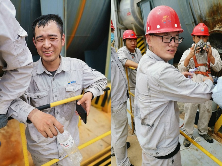 此次檢修工期短,任務重。裂解爐的溫度降溫速度較慢,爐外是35度的高溫,爐內是50多度的高溫,作業現場粉塵較重,作業現場空間狹小等都給檢修工作帶來了一定的困難,但是現場的員工和領導爭先恐后進入現場進行檢修。作業環境是惡劣的,作業內容是辛苦的,但是我們的伙伴們行動是勇猛的,信心是堅定的。大家嚴格圍繞“嚴、細、實、恒”四字原則開展現場工作,以“拼、搶、闖”的干勁撼動高溫,贏取早日滿負荷生產的分秒時間。