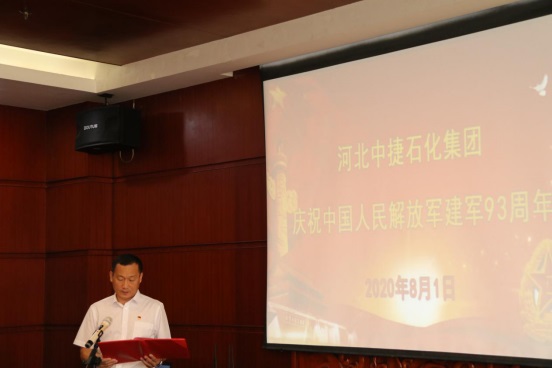活動開始,集團黨委書記于國臣同志進行致辭。于書記首先代表集團黨委和集團公司,向集團全體退伍軍人致以節日的祝賀和親切的慰問,隨后與與會人員共同回顧了中國人民解放軍已經走過93年的光榮歷史,旨在向全體軍人同志們表示最誠摯的敬意,進而向軍人學習,以引領助推中捷石化繼續奮進向前。于書記指出,集團退伍軍人作為中國人民解放軍緊密相連的一部分,正如中捷石化作為祖國重要組成的一部分,每當祖國和人民需要時,同樣義無反顧,積極作為。希望集團全體退伍軍人能夠以董事長為榜樣,攜手全體伙伴一起揚帆破浪再啟航程。同時,于書記對集團退伍軍人提出三點希望和囑托,希望大家在中捷石化建廠45周年到來之際,在集團發展面臨嚴峻形勢的緊要關頭,以共拼、共搶、共闖的態度行為,一起贏取一個又一個的勝利!