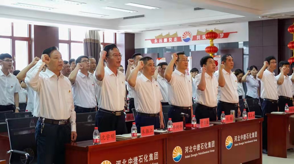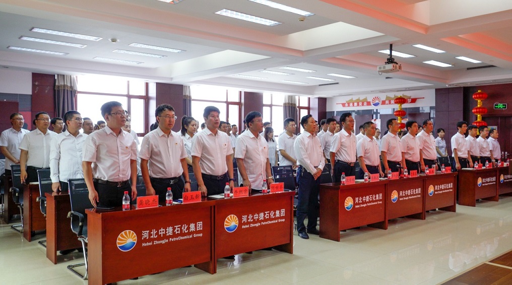 集團公司訊 為熱烈慶祝中國共產黨成立100周年,進一步激發基層黨組織活力,增強黨員干部的光榮感、使命感,大力營造積極向上的氛圍,弘揚正氣。同時,結合上級黨委關于黨史學習教育的要求部署和《關于在集團開展黨史學習教育的實施意見》,為把學習習近平新時代中國特色社會主義思想貫穿始終,把學史明理、學史增信、學史崇德、學史力行貫穿始終,把學黨史、悟思想、辦實事、開新局貫穿始終,進一步勉勵廣大黨員不忘初心,牢記使命,繼承和發揚黨的優良傳統,推動集團各項事業持續、穩定、創新、發展,6月28日,河北中捷石化集團黨委組織召開了慶祝建黨100周年大會。原中捷企業黨工委書記沈學明同志,集團黨委書記于國臣同志,集團黨委副書記、總經理喬樹華同志,以及各所屬黨支部書記,各支部黨員代表共計70余人參加了此次活動。