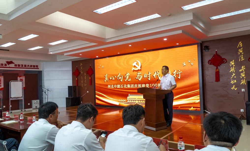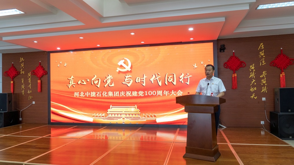 集團黨委書記于國臣同志為大會作題為《學黨史守初心 踐使命開新局》的重要講話。于書記首先指出,今天我們在這里相聚一堂,隆重慶祝中國共產黨成立100周年,既是為繼續發揚黨的優良傳統,促進“黨建促共建、共建促發展”目標的達成,也是為了在中捷石化建廠46周年,實行“承包經營制”后的新階段這一特殊節點,全面推進集團持續、穩定、創新、發展。