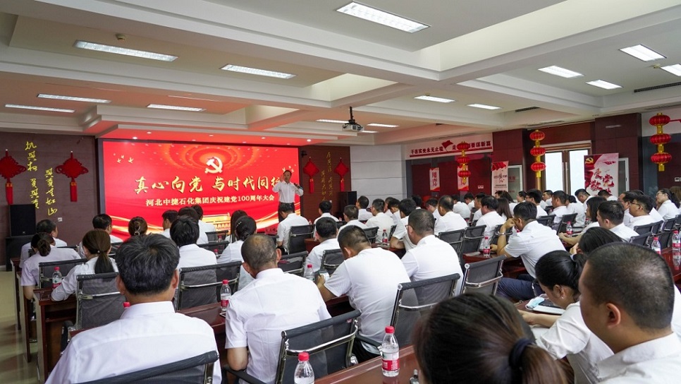 河北中捷石化集團黨委慶祝建黨100周年大會到此圓滿結束,正如于書記所講“面向未來,集團黨委將繼續以習近平新時代中國特色社會主義思想和黨的十九大精神為引領,深學細悟實用黨的十九屆五中全會精神,充分發揮政治核心和領導核心作用,緊緊圍繞企業發展做功課,團結一致、大膽創新、銳意進取,努力實現企業發展與黨建工作的高度融合,形成紅色文化發展新高度;繼續堅持貫徹‘認真、真實、實在’的企業精神、‘學習是石化園永不竣工的政治工程’的學習理念、‘強化拼搶闖、消除懶散閑’的工作作風和‘中捷石化唯一不變的就是變’的進取意識,擔負新使命,展現新作為,全心全意向‘做到’邁進;繼續堅持以黨史學習教育為契機,在按照規范要求開展各項規定動作的同時,積極落實上級黨委對集團黨建工作的部署安排,為苦干實干三年,推動滄州渤海新區實現高質量跨越式發展打牢思想基礎,作出應有貢獻;再接再厲、砥礪奮進,在穩扎穩打、創新有為的基層黨建事業進程中,為中國共產黨100周年華誕獻禮。”