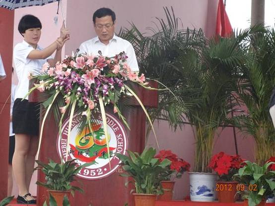 2012年9月2日上午10點(diǎn),秋雨淅瀝,彩帶飄飄。黃驊中學(xué)在眾人翹盼中,迎來了她60歲的生日慶典,來自社會各界的校友齊聚一堂。慶典會上,集團(tuán)公司總經(jīng)理于國臣代表集團(tuán)公司董事長王振華,以及捐資助教的企業(yè)界同仁發(fā)言。發(fā)言中,于總既表達(dá)了中捷石化對黃驊中學(xué)的深切關(guān)注和支持,又表達(dá)了對黃驊中學(xué)60年華誕的祝福,以及對歷屆教師春風(fēng)化雨的敬意。