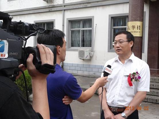 慶典結(jié)束后,黃驊中學(xué)為校址內(nèi)一所命名為“振華樓”的教學(xué)樓進(jìn)行了揭牌儀式,揭牌儀式結(jié)束現(xiàn)場,于總接受了黃驊電視臺記者的采訪。