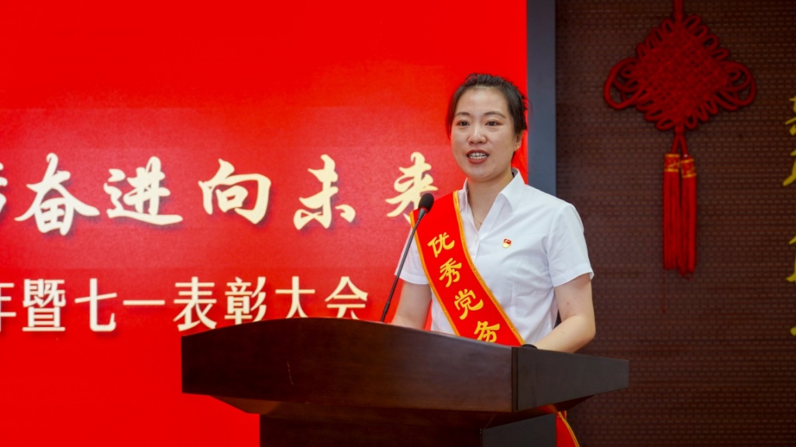 優(yōu)秀共產(chǎn)黨員代表、優(yōu)秀黨務(wù)工作者代表、先進(jìn)基層黨組織代表依次上臺發(fā)言。