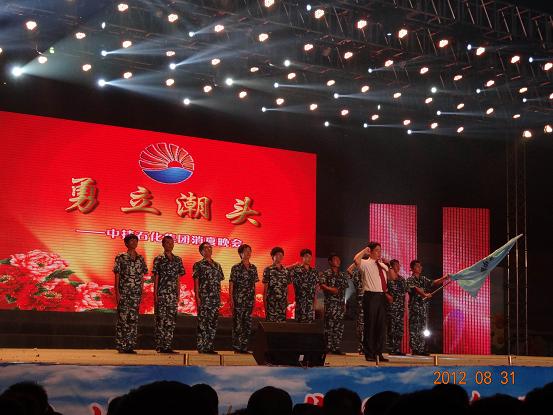晚會特邀滄州電視臺著名主持人劉靜、康黎助陣。歌曲、情景劇、舞蹈、詩朗誦等節目形式多樣、異彩紛呈。此外,還邀請了空政歌舞團,全軍文藝匯演一等獎獲得者——傅蓉,為大家帶來《陽光路上》、《祝福》兩首歌曲。各分公司員工身著色彩不同的統一服裝在臺下與演員互動,場面熱烈。集團和分公司紛紛獻出了自己的拿手節目,自編自導的音樂快板《中捷石化在騰飛》描繪了中捷石化集團這片和諧進步的景致,煥發著勃勃生機;為中捷石化集團創作的詩歌——《蔚藍的暢想》歌頌了中捷石化人憑海臨風,躊躇滿志,演繹著富有詩情畫意的暢想;中捷石化集團總經理于國臣為剛剛加入中捷石化集團的新員工授旗,河北新啟元能源技術開發股份有限公司常務副總經理喬樹華帶領全體新員工宣誓,并歡迎年輕有為的兄弟姐妹們加盟中捷石化集團,走向新的工作崗位。
