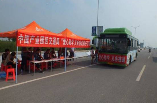 九月,一個(gè)開(kāi)學(xué)的季節(jié)。為了緩解河北農(nóng)大中捷校區(qū)新生“開(kāi)學(xué)季”的交通困難,我公司在9月10日至11日開(kāi)展了一次大型的“愛(ài)心助學(xué)、義務(wù)接送”活動(dòng),免費(fèi)接送河北農(nóng)大新生和家長(zhǎng)到中捷校區(qū)入學(xué)。