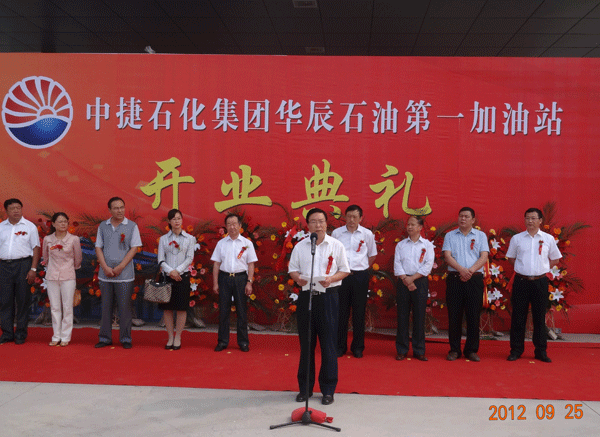 典禮現場彩球飛舞,彩旗飄揚,呈現出一派節日的喜慶景象。集團常務副總劉國新主持開業典禮儀式,并對中捷石化集團及華辰第一加油站做了簡單的介紹。