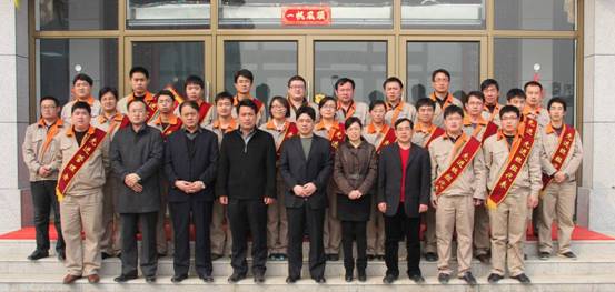 會后,公司領導與受表彰的先進代表在員工食堂門口合影留念。