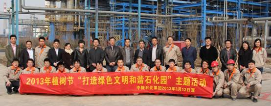 中捷石化集團(tuán)2013年植樹節(jié)“打造綠色文明和諧石化園”主題活動于3月15日下午兩點(diǎn)半在新啟元廠區(qū)隆重舉行,集團(tuán)總經(jīng)理于國臣帶領(lǐng)集團(tuán)公司及各子公司領(lǐng)導(dǎo)班子共30余人參加了此次活動。